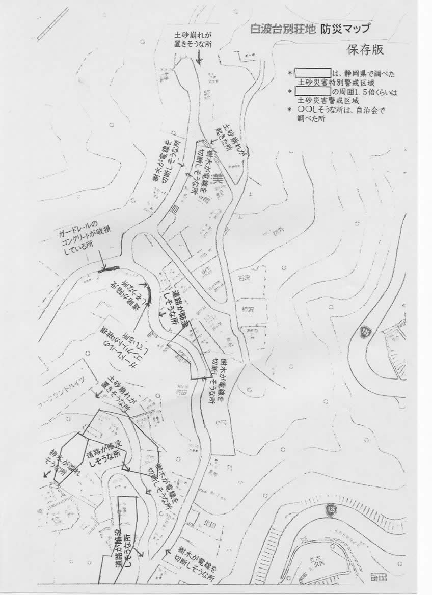 December 16, 2019 7:34 pm | 自治会、防災 | shiranamidai | 0白波台別荘地防災マップを策定しました。ご自分の家の周囲の状況・現状を把握しておいてください。自治会会員の皆様にはすでに配布済です。